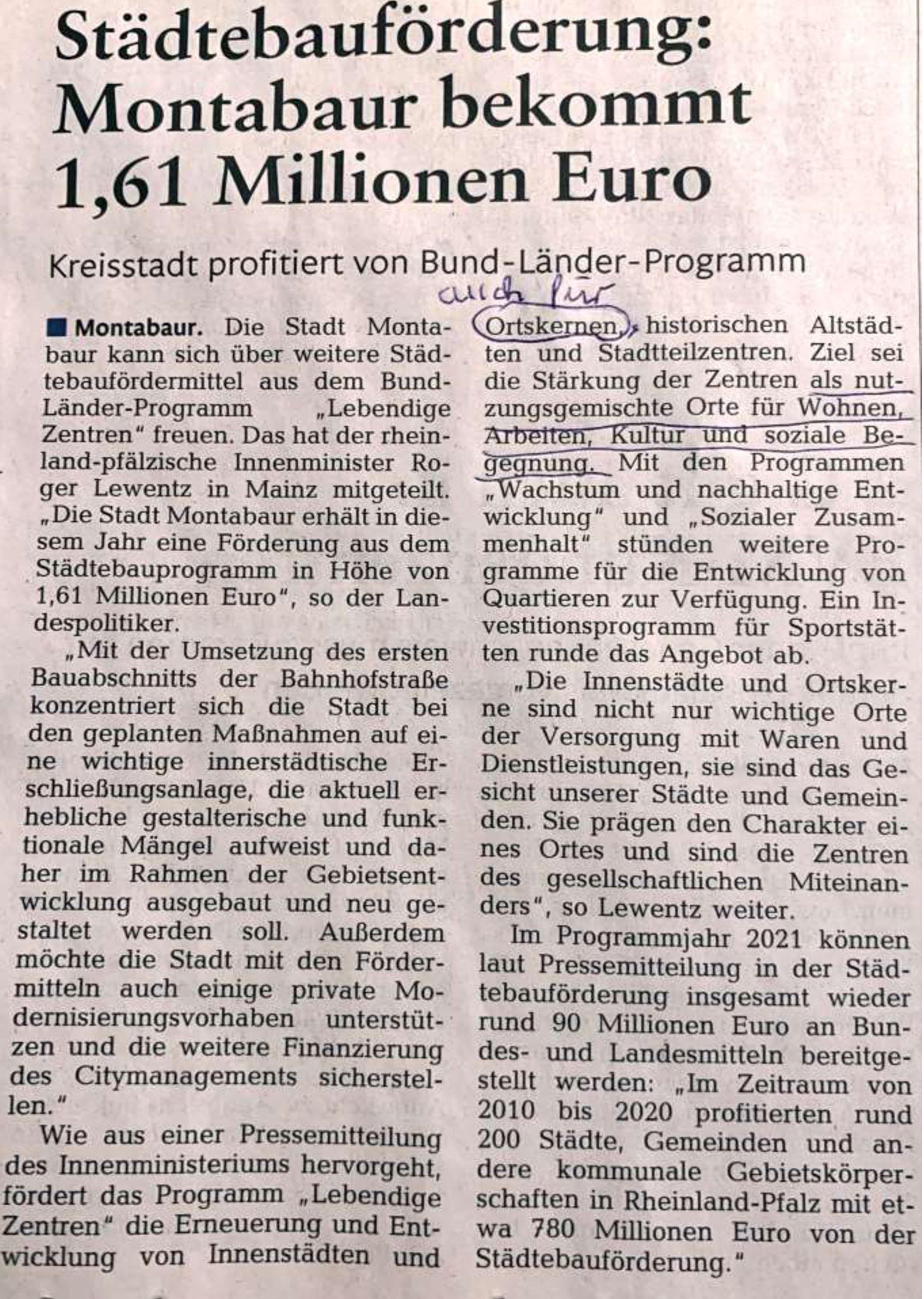 Zeitungsartikel 2021 in RZ: